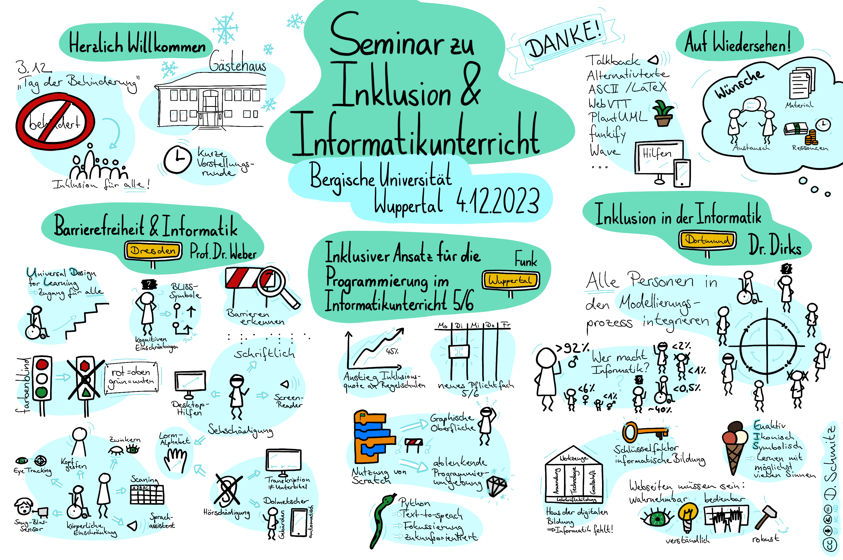 - 2. Seminar zu Inklusion und Informatikunterricht am 4. Dezember 2023 (Graphic Recording, CC-BY-NC-ND D. Schmitz)